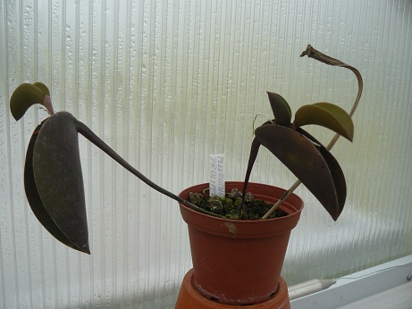 Tenhle pleurothalis, za dva roky co ho mám, se ani nepohnul. Když na jaře opět nezačal růst, tak mne už tak dopálil, že jsem ho ze skleníku vyhodil. Protože jsem ale lajdák a zapomněl jsem ho vysypat z květináče, tak byl až do konce léta ve tmě v garáži. Asi po třech měsících jsem si všiml, že mezi listy začíná něco vyrůstat, tak jsem mu dal ještě poslední šanci. Asi mu to konečně došlo, tak udělal dvě keiki a navíc ještě vykvetl. Netušil jsem, že jsou kytky takhle mazaný
