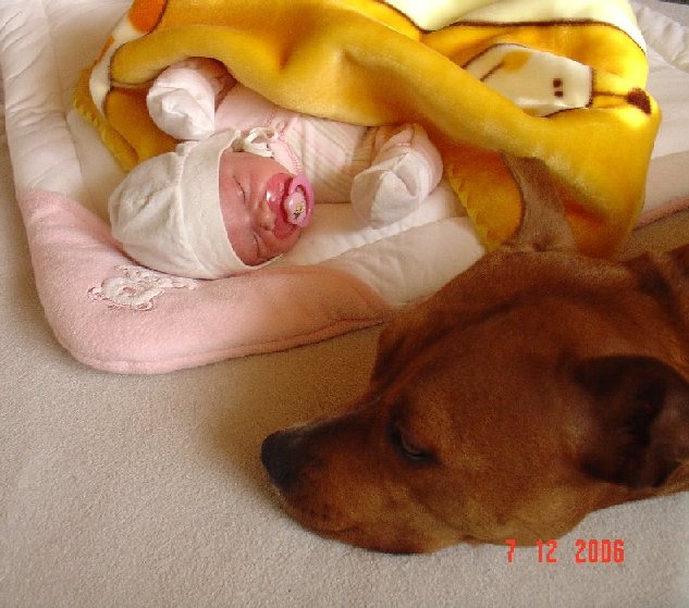 Vypadá vážně dobrácky. A s tím miminkem - krásné foto. Já mám několik důvodů, proč dávám přednost kočkám - nezávislost, osobnost, ale co hlavně - doma nestrádá o samotě tolik jako pejsci. Je mnohem nezávislejší na člověku. I když tenhle náš kocour je mazel všech mazlů. Ale je jedno komu kdo dá přednost. Nejlepší na zvířatech je to, že nic neřeší a jsou v pohodě.