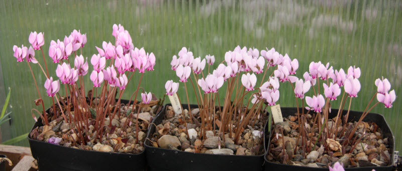 Podzimní bramboříky už to v tuhle chvíli mají skoro za sebou, tak pár fotek z minulých týdnů. Na první je C. cilicium, ten letos kvetl moc hezky - v květináči jsou dvě kytky, vlevo světlejší silná, vpravo trochu barevnější, ale taky slabší - jak už to tak bývá. Pak trojlístek mých nejstarších a největších, fotka je z 10. 10. Na třetí fotce jsou tyhle tři vpravo vzadu - je to foceno o 16 dní později a je vidět, jak bleskově vyrostly listy. T.