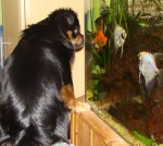 jo jo,  to ještě jezdí hlavou podle toho jak plavou, klepe se, olizuje, a kolikrát i začal na sklo škrábat, což jsem mu už nějak rozmluvila