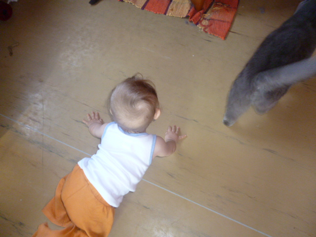 Malému je 8 měsíců a kočky se naučily předním zdrhat tahá je za chlupy, chutná jim ocasi