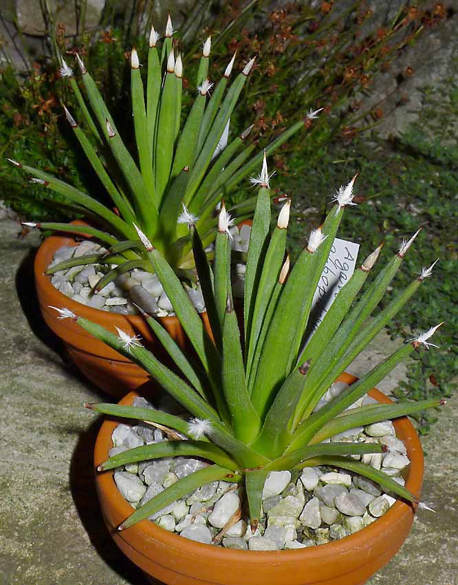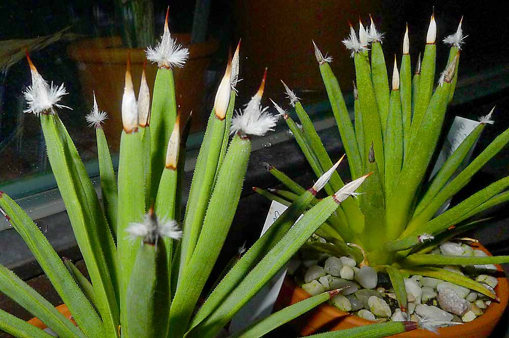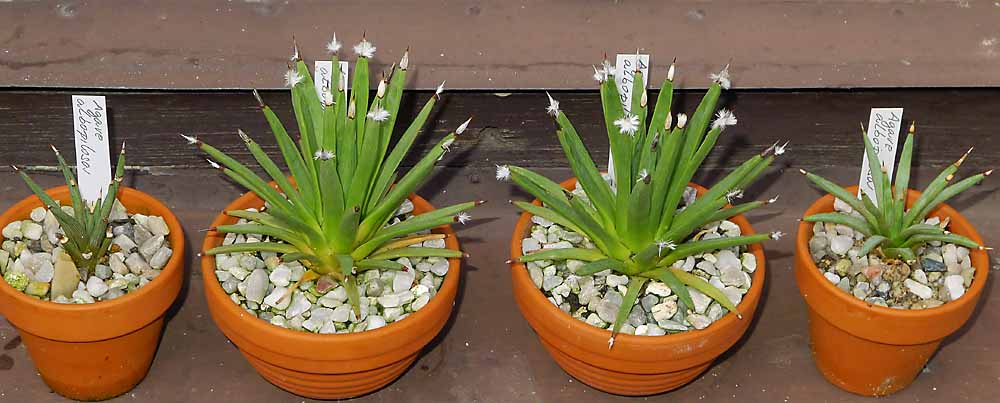 Agave albopilosa má asi 8cm v průměru a začíná to vypadat, že bude štětičky otevírat i v kultuře. Zatím jsou ale rostliny stále mladé takže nic moc.