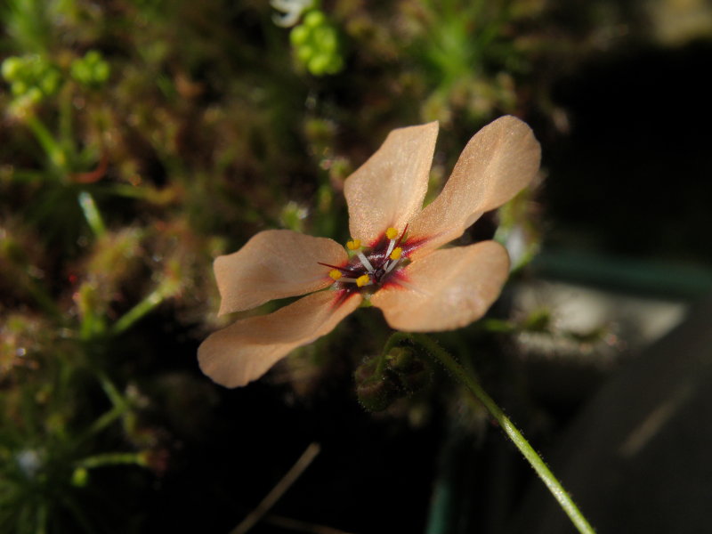 Pokud chcete mít rostlinku, jejíž květ je téměř větší, než celá její listová růžice, tak zkuste pěstovat trpasličí rosnatky z jz.Austrálie. Na snímku dnešní první květ rosnatky Drosera miniata. Samotná listová růžice má tak 2 cm v průměru, a její květ ji ještě o pár mm předčí. Vidět tyto rostliny rostoucí v v desítkách jedinců vedle sebe s květy které opalizují na sluníčku třpitivými tóny, musí být pro obdivovatele těchto rostlin vskutku nezapomenutelný zážitek ..... zítra odlétám do Perthu a jdu je buše-macchie najít