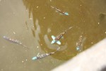 Bohužel špatné fotky překrásné rybky: severoamerický jeleček Notropis chrosomus. Vloni jsem náhodně odchoval pár kousků, rybičky úspěšně přezimovaly ve skleníku (díky nim tam byla kalamita mšic, neodvážil jsem se stříkat :twisted: ) a teď ukazují třecí vybarvení. Blbě se fotí, nejsou plaché, jen neskutečně rychlé... Dospělé jsou asi 12 cm dlouhé, těmhle ještě tak dvě čísla chybějí. Na youtube.com je možné najít spoustu videí s těmihle rybami, doporučuju shlédnout - třeba tohle je dobrý https://www.youtube.com/watch?v=QHJEy9sm3Pk, nebo tohle https://www.youtube.com/watch?v=QnvL5Cqg_8M, v domovině to vypadá podobně https://www.youtube.com/watch?v=Ao6U2u6v4Sk. Krmení odrostlého plůdku tady https://www.youtube.com/watch?v=wGOqIzhA1RA. Já jich mám devět, sedm samců a dvě samice, tak to zatím na takovéhle tanečky nevypadá :mrgreen: .