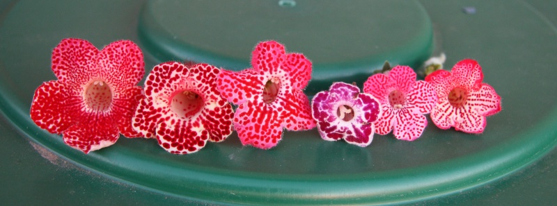 Zleva doprava: neznámá 1, neznámá 2, Clytie, Mother´s Lipstick, Manchu, Sunshine. Ještě nekvete Jester a další dvě neznámé. T.