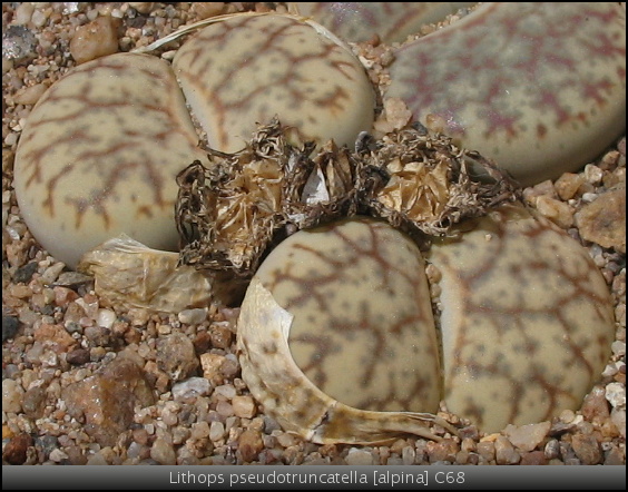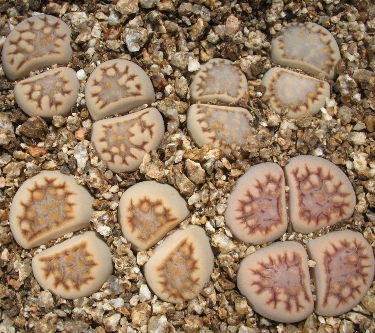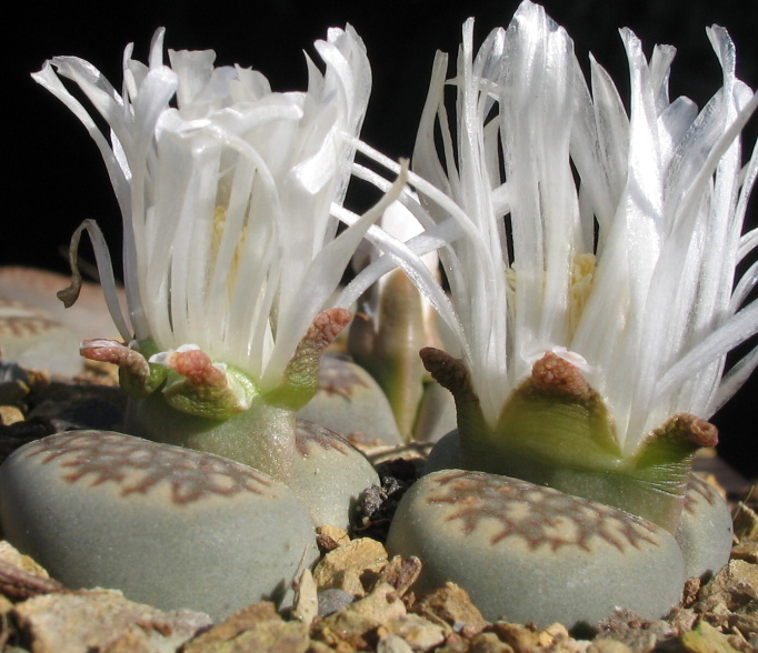 tommy: Používám následující osvědčený postup. Substrát: směs lignocelu, perlitu a křemičitého písku(1:2:1). Když mám nadrcené sphagnum, tak ho přidám do substrátu (max 10%). Lignocel nekupuju kostky, ale pytlovaný, vyjde to levněji, nemusím ho máčet a není tak zasolený jako kostky, na orchideje by proprat ale potřeboval. Perlit požívám jemný(!), ne hrubý adroperlit.Kupuji z první ruky přímo ve firmě Perlit Praha, vyjde to daleko levněji než ty malé pytlíky v obchodech, nehledě na to, že ty jemnější frakce se v maloobchodě vůbec neprodávají. Písek kupuji v Mladějově u Jičína - sklářský sušený pytlovaný, je minimálně stejně kvalitní jako ty předražené v maloobchodech. Sphagnum nekupuji, roste ho u nás dost.Lignocel sterilizuji v troubě, písek ani perlit nesterilizuji. Vše smíchám a dám do výsevních nádob. Použít se dá kde co, důležité je, aby byly nádoby hlubší, tak 8cm ideál. Spousta lidí vysévá i pěstuje litopsy v malých květináčkách, což je chyba, litopsy potřebují dost místa na kořeny, aby mohly zdárně růst a nebyly vytažené nad zem - v přírodě rostou zároveň se zemí. Většinou používám na výsevy 10cm květníky, hlavně nepoužívat bílé nebo transparentní, roste pod nimi řasa. Připraveným substrátem naplním nádoby, zarovnám povrch a nakonec zasypu povrch cca 3mm silnou vrstvou písku frakce 2-3mm. Použít se dá i antuka. Písek používám na povrch říční, křemičitý ne, ten mají řasy moc rády… Takto připravené květníky zaleju destilkou. Na klíčení nepoužívám hnojiva ani stimulátory. Po vyklíčení pochopitelně hnojím, požívám wuxal a ze stimulátorů používám atonik. Není potřeba tolik ředit jako pro orchideje, dávám 1ml/5l (wuxal). Semena vysévám na povrch, po vysetí jemně poklepu květníkem, aby semena dobře zapadla mezi zrnka písku, potom povrch přestříknu pětiprocentním peroxidem vodíku. Dám do minipařeniště, zakreju a šoupnu pod zářivky. Cyklus svícení 8/4,tj. 8hod. světlo 4hod. tma, rostliny rychleji rostou. Než rostliny vyklíčí svítím normálně 14/10. Ideální teplota na klíčení je cca 23st. den a 10st.noc. Zvláště druhy pocházejíci z oblastí zimních srážek potřebují výraznější pokles nočních teplot, letňáci klíčí dobře i bez výrazného poklesu teplot. Po vyklíčení teplotu tak o dva tři stupně zvýším, výrazný noční pokles teplot není již nutný. Rostliny se poprvé převlékají asi za dva měsíce po vyklíčení, v té době se jen omezí zálivka, nenechat ale úplně přesychat, rostliny by mohly jít do dormance a zastavily by růst. Jinak výsevy konofyt jsou obdobné, rozdíl je jen v substrátu a teplotě na klíčení. Substrát jemnější s přidáním listovky,teploty pro klíčení i růst nižší, ideál 20st. den, 8st. noc. Je to ale nimračka, mají prachová semena, některé druhy mají po vyklíčení velikost špendlíkové hlavičky, proto je výsev konofyt náročnější. Předpokládám, že orchidejáři mají i v zimě doma dost smutnic, takže chránit zvláště čerstvé výsevy před smutnicemi! Přikládám ještě foto vyselektovaného „keneďáka“, jak jsem slíbil, dále taky lithops v květu a ukázku v čem spočívá krasa lithopsů - i v rámci druhu a lokality je každá rostlinaje jedinečný originál. Tak ať se případný výsev zadaří!