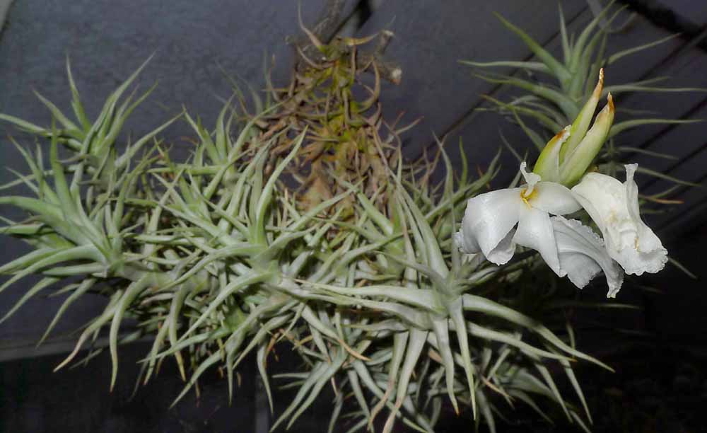 Dnes mi rozkvetla tato stříbřitá. Nejprve jsem si myslel, že mi na stvol přistál nějakej kus toaleťáku či nějakého jiného bordelu. Až pak jsem si všiml, že je to takový nepravidelný bílý květ
