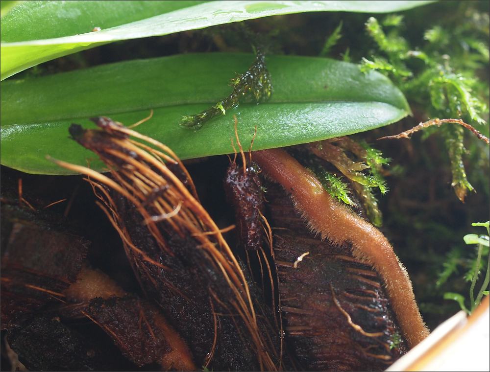 A ještě k tématu kořeny: já u orchidejí (ale hlavně u paphiopedil) zásadně pěstuju kořeny. Jakmile má rostlina v pořádku kořenový systém, tak listí už naroste. Žádný květ mi neudělá takovou radost, jako aktivní špička nového kořenu prodírající se substrátem. Teď je to zrovna Paph. randsii, které přišlo vloni od Popowa téměř bez kořenů. Tak snad už poroste a za pár let se možná dočkám i květů  .