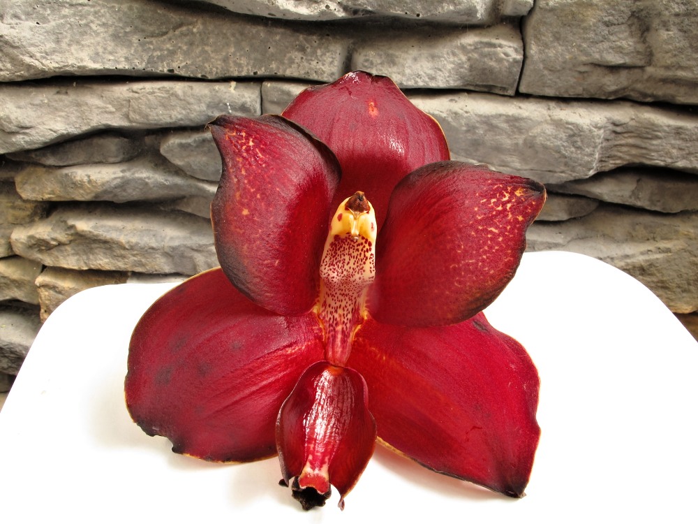 Jednou jsem na netu viděla jak otáčejí květy, tak tady jeden otočený květ- Anguloa ruckeri .Voskový květ je stvořen pro srandičky ,můžete si s ním dělat co chcete, bez poškození.