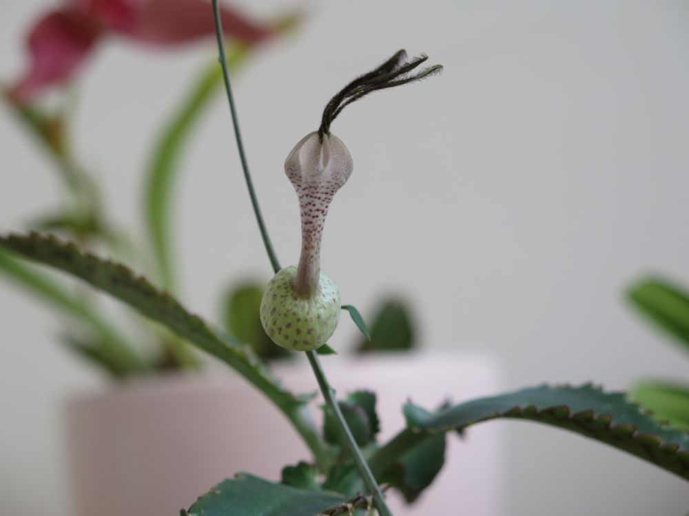 Ceropegie simonae vyrazila nezvyklým tenkým plazivým šlahounem a sype poupátka. (na obrázku je označena jako hybridní, ale to jsem to popletla  ) Martina