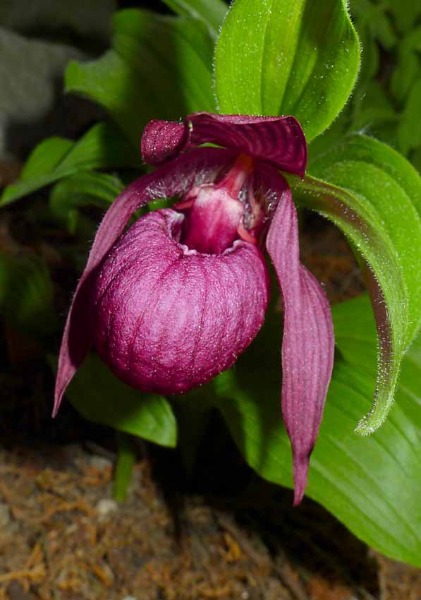 Cypripedium hotei-atsumorianum mi přežilo zimu a vystrčilo na mne kvítek