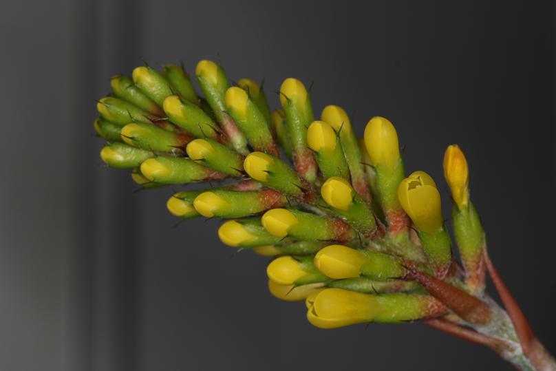 Hezké podmračené odpoledne. U nás je tak zatažíno, že bych potřeboval dosvětlovat i já. Přesto nakvétá moje relativně nová Aechmaea caudata. Být víc sluníčka bylo by to květenství krásně červenožluté.