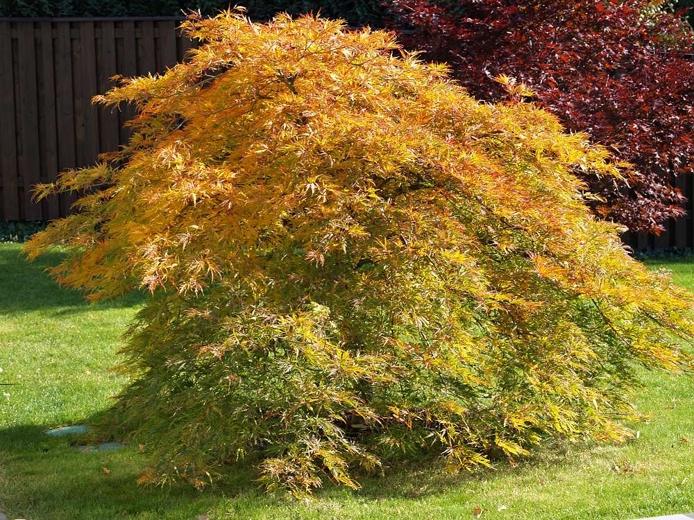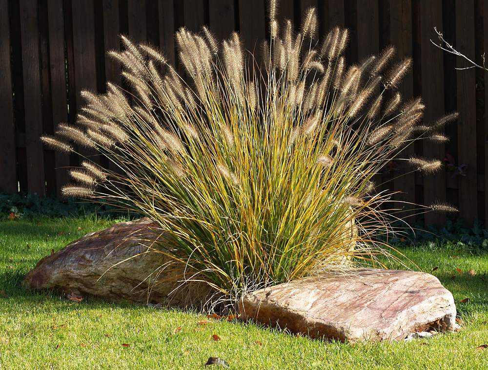 Barvy podzimu v zahradě. Pennisetum alopecuroides Acer palmatum dissectum