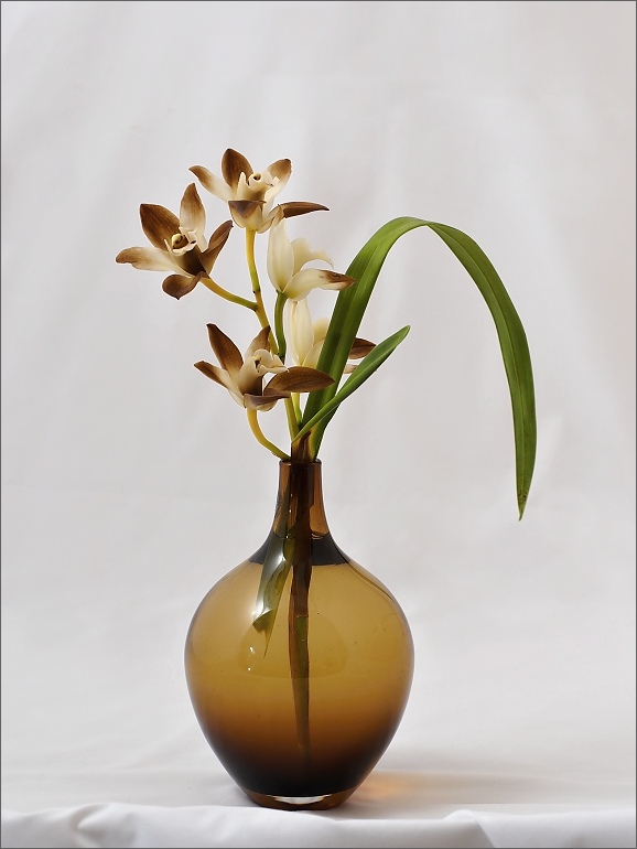 Na fotkách vidíte vznik ochranného zbarvení (mimikry),kdy původně smetanově bílé cymbidium postupně přebírá barvu vázy,ve které je umístěno... :shock: :!:
