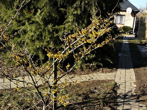Víc jak patnáctiletá bonsai z azalky kvete každoročně takhle bohatě. To samé posel jara Hamamelis (vilín), který i krásně voní. No jaro se začíná hlásit. Dnes od 11ti hodin jsem už vynášel kytky ven na zálivku a první hnojení. Včera a dnes opravdu jak plné jaro.