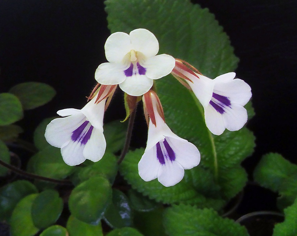 Vykvitla jedna za najmenších izbových kvetín - Sinningia muscicola, dopestovaná zo semien (veľkosťou podobné semenám orchidei). Najmešou je S. pusilla, ktorá sa ešte len chystá kvitnúť. Potom dám foto. A tiež kvitne Primulina tamiana (možnosť semien pre záujemcov).
