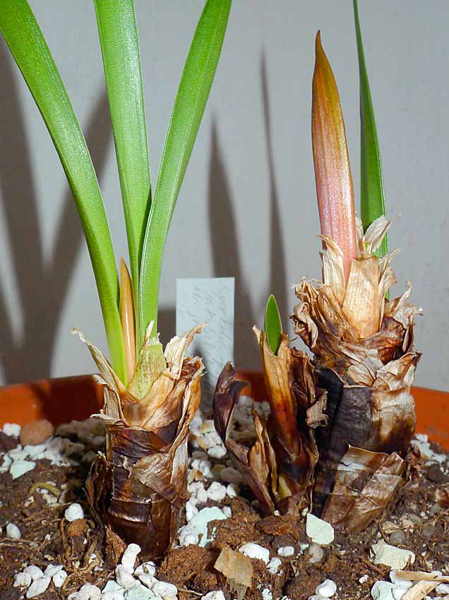 Na Sprekelia formosissima (Jakubská lilie) od města Atarjea z Mex. se začínají klubat poupata. U původní cibule se asi 3 roky dělaly oddělky a nic se nedělo. Jeden se již loni jakoby oddálil a zesílil a tak jsem čekal že vykvete- nevykvetl. Letos v březnu jsem rostlinu přesadil, ale jelikož měla funkční kořeny tak jsem ji nerozdělil ale nechal bal nepoškozený. Před nedávnem stará cibule začala tlačit květ ale listy nikoli a ta mladá se ještě více oddálila a tlačila pouze listí. Tak nějak jsem byl zklamaný že květ bude zase jenom jeden. Nyní již ale konečně i ta oddělená začala strkat poupě. Trvá to 4-5 let než se oddělek osamostatní a dospěje.