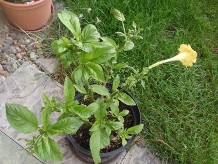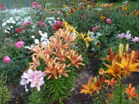 Lilie jsou vysoké od cca 20cm do 100 cm, možná jsou některé vyšší. Některé voní úplně omamně. Jsou krásné. Teď čekám na bílou a na podzim kvete Liliovka hadí. Je moc zajímavá. Mám jich aspoň 7-8 barev. A ta modrá, to je Thunbergie velkokvětá. Když rozkvete větší množství květů, je to opravdu podívaná. Akorát má jednu nepříjemnost, že se musí na zimu uklízet. Je v květníku, průměr aspoň 30 cm a je to kousek. No, na zahradě se vyřádím, hlavně když plevelím