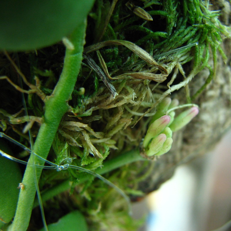 Chvilku na ni nekoukám a vytlačila cosi jako anténu  Je to Dischidia minor a její asimilační list.Přečetla jsem si že asimilační list má funkci tuto - výměna plynů s okolním prostředím  -to je zajímavý , fotosyntézu a odpařování vody.Co ta kytička všechno nedokáže.