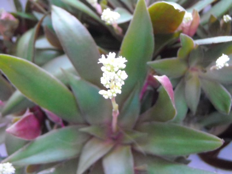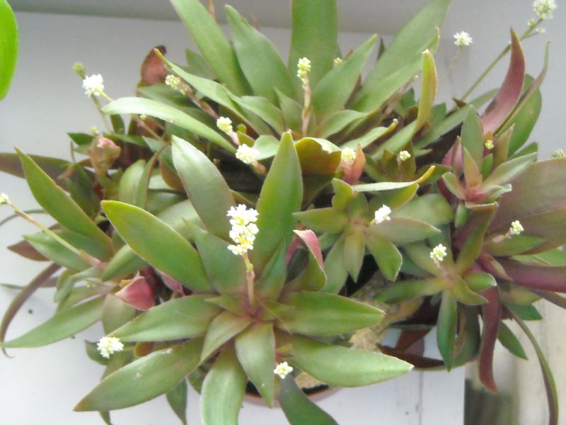 asi to bude nějaký plevel, jedna ta růžice je vlastně už hotová rostlinka, ta se zasadí a začne vytvářet takové stopky na kterých se objeví nové malinké rostlinky, když dorostou odtrhne se stopka a zasadí a tak pořád dokola. Mě se takhle rozrostla z jedné rostlinky během tří let a to už jsem jí i něco olámala. Naštěstí není moc velká a i květení je malé, ale vypadá to hezky na stole. Snad ji někdo pojmenuje, uvidíme, když tak to zkusím jinde. |