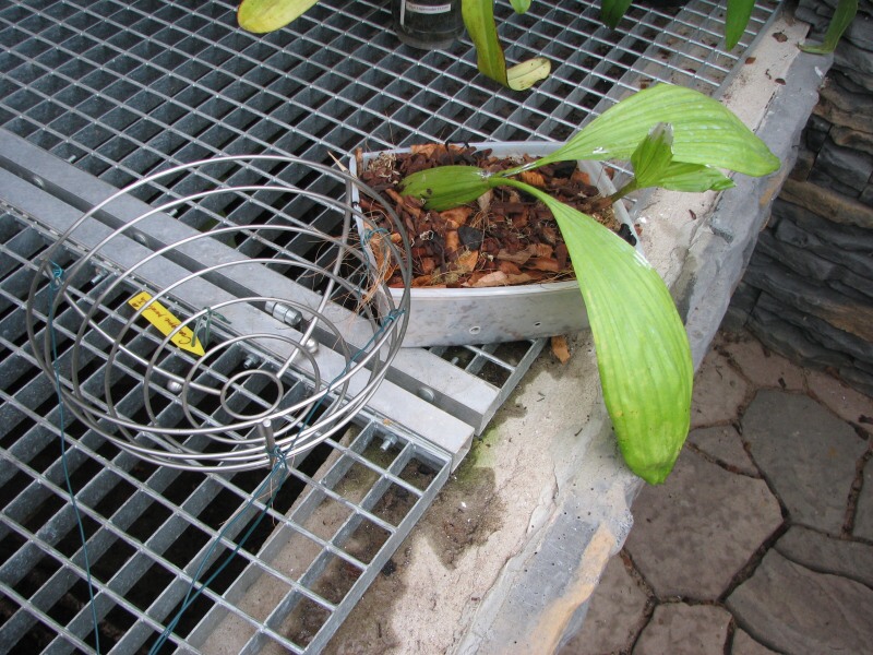 Když jsem si Coelogyne panduratu vezla od p.Mandlíka (oddělenou o 4 pahlízkách) strašně jsem se bála že mě umře.A hlavně jak mu to pak budu vysvětlovat . Jela jsem autobusem domu a kytičku jsem držela jak největší svátost-fakt mám ráda kytky s příběhem. Bylo to tak-při návštěvě v jeho skleníku -říká co bych vám ještě dal? A ......šmik(byla oddělená od mateřské rostliny) a panduráta byla moje.Na jeho radu jsem ji dala do nízké misky Substrát je podle mě -drobnější coco chips+rašeliník.(Hnojená kravincem.)Protože je taková neskladnější(vytváří dlouhý rhizom-ale jak kdy) -nešlo to do misky zatočit nešlo a nešlo. Jednu pahlízku jsem ustřihla- no náhodou to vyšlo a chytlo se vše.Proto pak kvetla 2x z obou pahlízek. Pěstování jak ji mám já- Mám ji opravdu celoročně na jižním okně asi 30cm od okna. Vlhkost v cihlovém domu tak 50-60% .V létě mám okno vyklopený stále -tak vlhkost dostává přes den určitě zabrat. Používám žaluzie-otevřené napůl. Rostla pěkně-nikdy ji sluníčko nespálilo.Používám ještě větráčky od pc. V létě Coelogyne pandurata vytvořila ohromnou pahlízku. Chtěla jsem ji mít ještě jednou a to ve skleníku.(už vím že to nejde mám tam 13°C v noci,to je málo)Tak jsem si řekla už to jednou vyšlo tak jsem tu velkou pahlízku i se začínajícím výhonem-ustřihla.Dala jsem ji do košíku-a do skleníku.No vyhodnocení-nic moc-foto. Podvědomně si pamatuju že p.Mandlík říkal něco jako ,že v košíku řádně nezakoření.Ale heslo by mělo být-když ti něco jde tak to sakra neměň. Dneska jsem ji opatrně vrátila do původní misky jak ten první oddělek.(Oddělená pahlízka se nejprve hodně ztenčila-ale ted zase pomalu nabývá velikosti .)Kytička moc kořenů neměla.A je zase doma na jihu. Myslím ,že těd je málo sluníčka i mě nové výhony pomalu rostou ale den se už prodlužuje- ty kytky to musí cítit a vše půjde jak má.