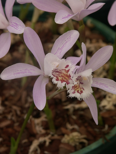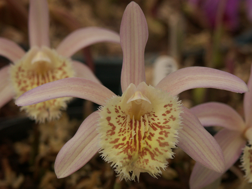 Pavle, ano mám na mysli právě ty bílé špičky. Když připustím, že jde o P. pleionoides, tak žádná z nich bílé špičky nemá (bílé nebo žluté špičky mají pouze hybridy). Navíc na horním petalu je jasně vidět i přes kvalitu fotek, že se jedná o ohraničené skvrny, nikoli o špičky, což je pro mne dost určující. Všechny kultivary, které mají vyšlechtěné dvoubarevné petaly mají plynulý přechod barev. Pro srovnání uvádím zdarvou rostlinu s bílými špičkami - P. Alishan 'Mt. Fuji' a virózní rostlinu P. Soufiere.