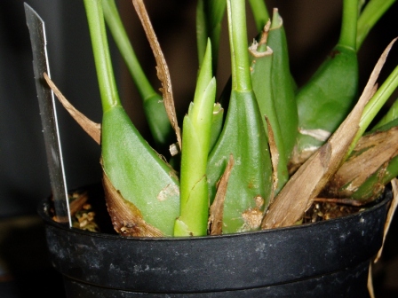Tady Miro nemusíš mít moc obavy. Coelogyna speciosa je bezproblémová kytka. Je z Coelogyn spíš mokřejší, není důvod nechávat pahlízi scvrkat. Pokud bere vodu ze substrátu tak zalévat. Bezproblému udělá dvě generace za rok, dobře nakvétá. Sice jedním květem, ale ten remortuje. Ani nevím, kolikrát po sobě, 2 možná 3.