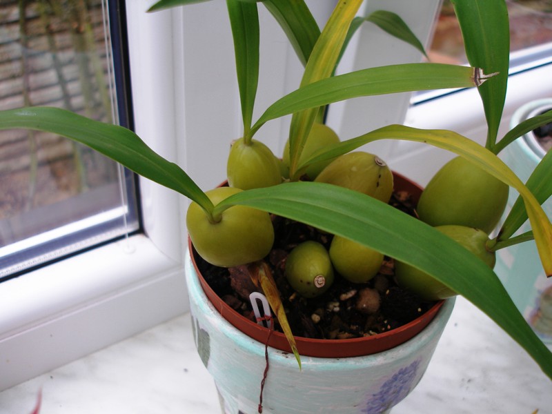 ... vstupuji naposled abych Vám ukázal "typicky zcvrklé" pahlízy Coelogyne cristata. Dávám nejen kvetoucí rostlinu ale i detail pahlíz, jak mají vypadat aby rostlina vydatně kvetla. .... Co se týká Vás, kteří si přeze mně objednali u kamaráda rostliny, Vaše požadavky jsem mu předal včetně adres a telefonů. Postupně se s Vámi spojí a pokud to půjde vykryje Vaše požadavky. Fotografie byly pořízeny dnes v 6:45. Přeji Vám mnoho úspěchů.