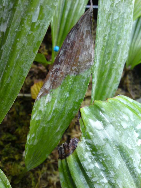 Jednoznačně to vypadá spíše na výživový problém, než na houbu. Trval bych na předchozím odhadu. Obávám se, že Physan nebude účinný. Přidal bych stopové prvky, zvýšil okolní vlhkost a vynesl jí ven. To by mělo pomoci. Pokud pěstujeme pleionky celoročně ve skleníku, neobejdeme se bez ventilátoru (lépe několik), který zajistí proudění vzduchu. Jinak dopadají rostliny přesně takto. K.
