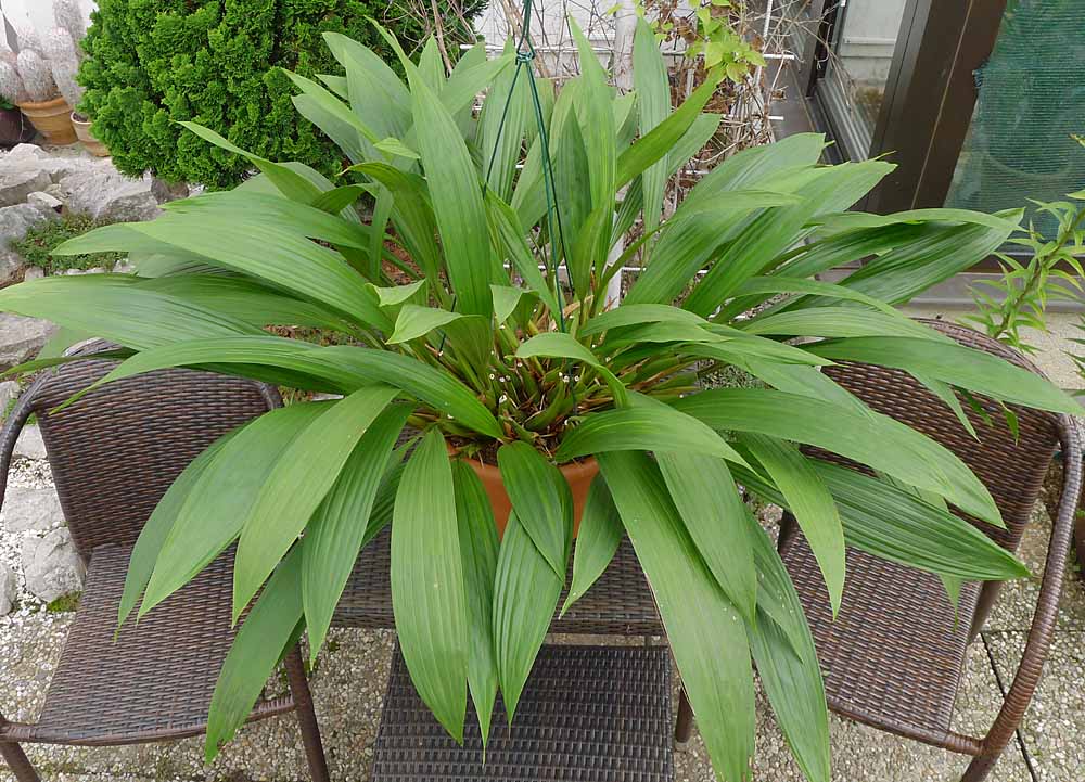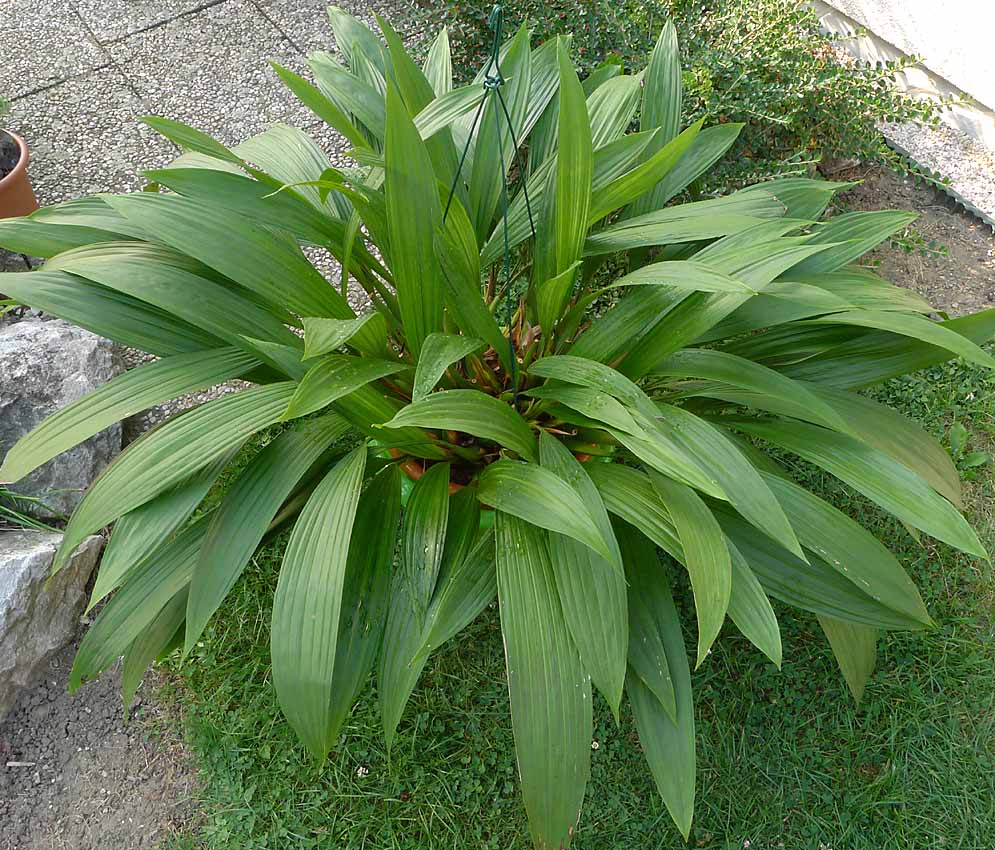 Tak jsem si dnes toho svého obra přeměřil a zděsil jsem se. Průměr je cca 140cm - strašné  Dlaždice na terase jsou 40x60cm. Až dotvoří nové listy a pahlízy tak to nechci vidět. To přesazení v zimě byl holý nesmysl