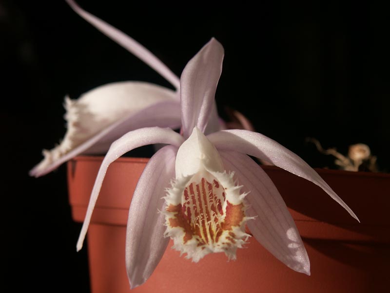 Zdenka píše: Tohle jsou krásné kytičky, ale způsob pěstování je do paneláku nepředurčuje. Předně děkuji všem za pochvaly, nicméně Zdenko, s tímto bych nesouhlasil. Rozhodně podzimní druhy a kultivary se chovají mnohem více jako pokojovky než chladnomilné jarní druhy. Pro dormanci, která je ktarší než u jarních (cca 4-6 týdnů) je třeba zajistit teplotu kolem 10°C (chladná, třeba i tmavá chodba plně vyhovuje). Pak rostliny začínají růst (již koncem ledna) a teplota bytu kolem 20°C (v létě do 30°C) je pro ně ideální. V létě je můžete letnit společně s ostatními tropickými orchidejemi. Na závěr jeden postřeh z chovu: Za ta léta co se pleionkám věnuji jsem zabil mnoho jedinců jarních druhů, ale ANI JEDNU podzimní. K.