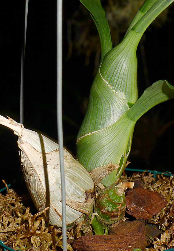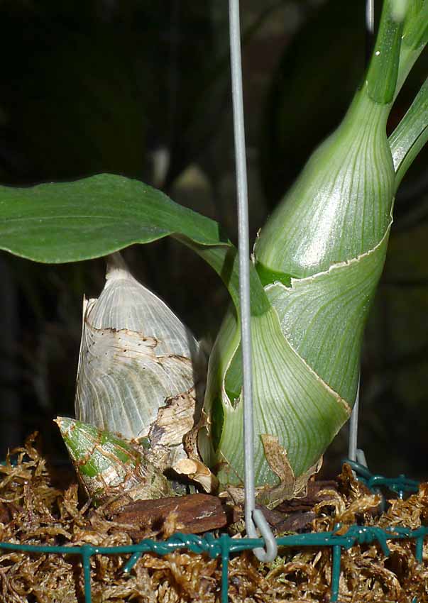To první C. denticulatum od Elsner co 2x kvetlo se konečně rozhodlo tvořit pahlízu. Doufám že přeroste tu loňskou aby příští rok přidalo na květech. Zatím je to objemově tak 1:1. Stále ho zalévám a pochvy na listech až praskají. Doufám, že to nepřepísknu a neuleji ho  .