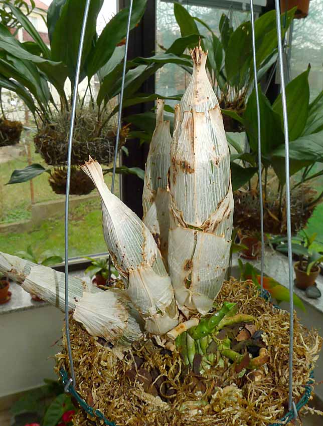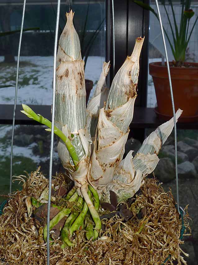 Tak jsem nedávno namočil to své Catasetum pileatum "Oro Verde". Rostlina se i nyní v zimě napila a květní stvol se vyvíjí dále. I další Cataseta se napíjejí a tato sporadická zálivka jim nikterak nevadí.