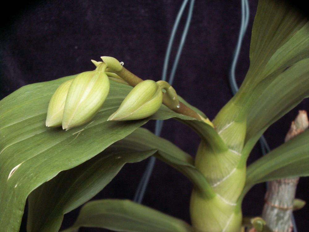 Ony ty kytky občas blbnou a kříženci zvláště. Nemyslím, že by ten kořen měl nějaký podstatný výživový význam pro rostlinu nebo snad stvol. Mě jak nyní kvete to Catasetum pileatum "Green-gold" tak si pustilo kořen také a už zarostl do substrátu. Je to ale poprvé co se mi to objevilo. Ty "výpotky" to je sladká medovice( nektar), kterou rostlina v předstihu láká opylovače aby se tam naučily létat než rozkvetou květy. Občas si ji olíznu z prstu i já