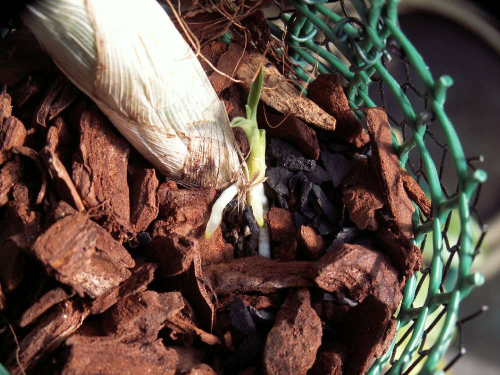 Minulý týden jak bylo to horko, jsem použil na zálivku 2ml vody ke kořenům. Kytku jsem položil šikmo do kůry, nový výhon nahoru a obsypal drobným dřevěným uhlím. Výhon jaksi nic neudělal, jen tam přibylo kořenů, ale jejich délku neznám. Dal bych další dva ml, má být horko. Co vy na to odborníci ?