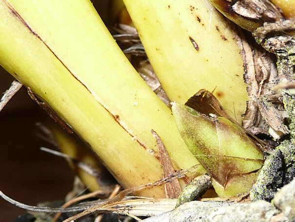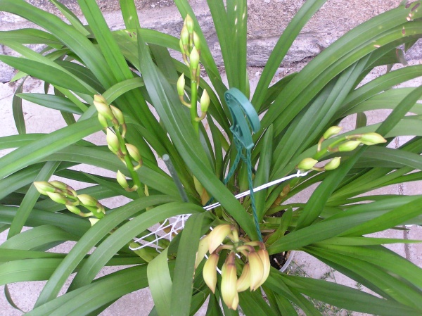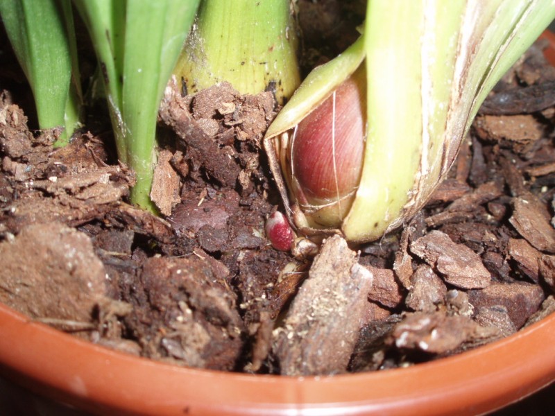 Katko, krásná rostlina, vypadá to, že máme stejné cymbidium. Kupovala jsem ho ve výprodeji v Hornbachu. Ten ulomený puk mě dost mrzí, ale co se dá dělat. Aspoň že je tam ještě jeden. Schovával se pod suchými listy jak má miro na první fotce. Chtěla jsem je odstranit a přitom jsem nalomila ten puk.