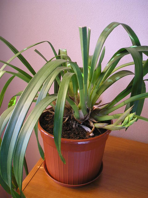 Moje cymbídko dnes , ešte stále nerozkvitlo, ale dnes mi spadlo a už som myslela , že je po ňom, odniesli to 4 puky daleko od plaču som nemala,   dalšie 2 stvoly dorasťajú a už jednému vidno 6 pukov