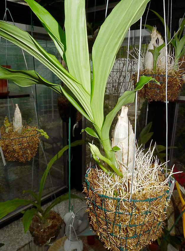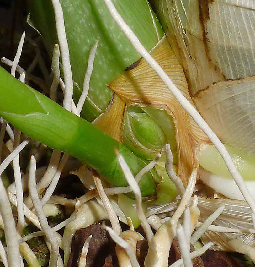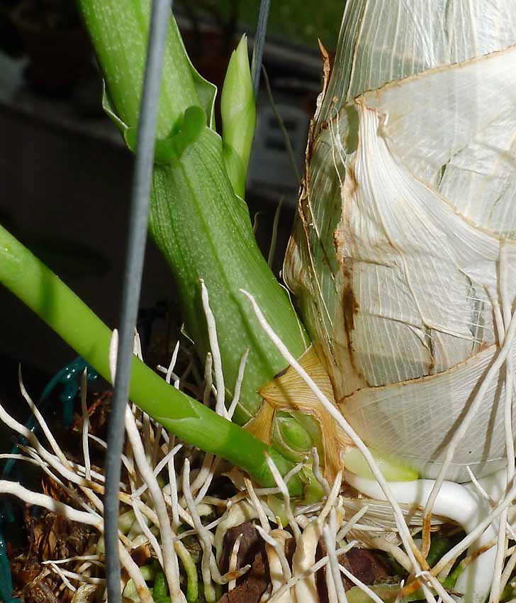 Tak nevím, co se ta Cataseta letos zbláznila. Z nového výhonu mi pokvete Catasetum pileatum v. imperiale. Strká dva květní stvoly. Teď to skoro začíná vypadat že mu to nestačí a začíná k nim tlačit ještě třetí, nebo co to je. Staré pahlízy má napité k prasknutí a jedna také na podzim praskla. Vypadá to, že tahle rostlina má asi kořeny v pořádku