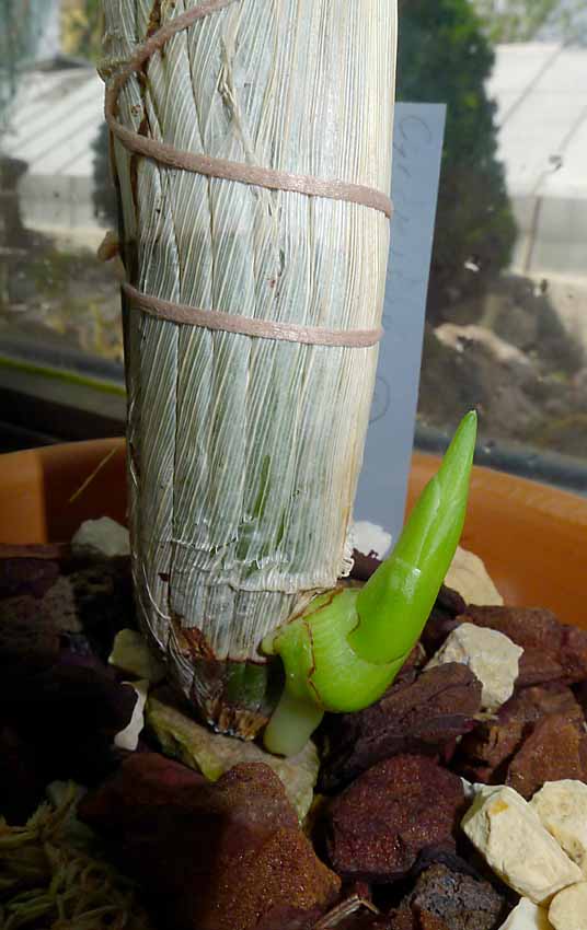Ta Catasetineae mají obrovskou výdrž a životaschopnost. I poškozená stará pahlíza Catasetum schunkei začíná rašit. Cyrtopodium po několika měsících také. Obě hojně rosím.