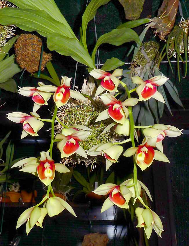 U mě se překonává C. pileatum v. imperiale, kterou jsem si pořídil předloni na výstavě orchidejí v Chotči. Z jednoho výhonu dva květní stvoly a třetí začal vyrůstat. Květy už se začínají otevírat. Bohužel ta Cataseta rostou pomaleji než bych si přál. Jsou to takové "kaktusy" mezi orchidejemi. Napěstovat velikou rostlinu z malé trvá někdy celé roky. Možná jim dělají dobře ty "kartáčové kořeny" které denně sprchuji. Letos mi poprvé pokvete C. expansum. V kořenech se již ztrácí i jmenovka.