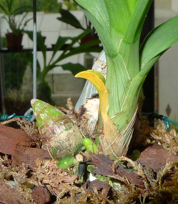 Zdenka: Radši bych kdyby nasadilo to druhé co jsem ještě neviděl a co mi přišlo nedávno. Moc radosti z té další násady nemám, ale asi ten stvol nechám. Ať si sama rostlina rozhodne co dělat! evulka: Já hnojím minimálně. Myslím, že v hnojení to nebude. Já mám spíše strach z přehnojení. Také jsem toho názoru, že v té dešťovce spláchlé ze střechy už je hnojivo obsaženo. Trus ptáků, prach z přírody a ze střechy ap. Hnojím krystalonem květ a plod tak jednou do měsíce a o trochu menší koncentrací než se uvádí. Věci na kůrách asi poloviční koncentrací. Já ale ve vegetaci poměrně hodně zalévám a to i Cataseta a podobné rody. Ve vegetaci snesou rostliny vody hodně a spíše mi připadá že u pěstitelů trpí suchem. Venku kropím rostliny denně pokud je teplota přes den nad 20°C. Při kropení ale nejsou úplně prolité. Venku všechno rychle vysýchá. Při slunečných dnech kropím i dvakrát denně, ráno a pozdě večer. V ZZ hodně větrám a přes den kdy je zavřená často spínají větráky. Rostliny jsou ale mokré celé dopoledne. Do všeho prostě valím v létě vodu. Ať je to Catasetum, E. citrina nebo třeba Cyrtopodium