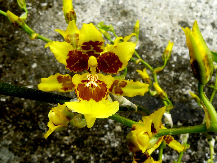 Poměrně robustní teplé Oncidium. Květné stvoly cca 1,5 - 2 metry obsypané nádhernými 2cm velkými květy.