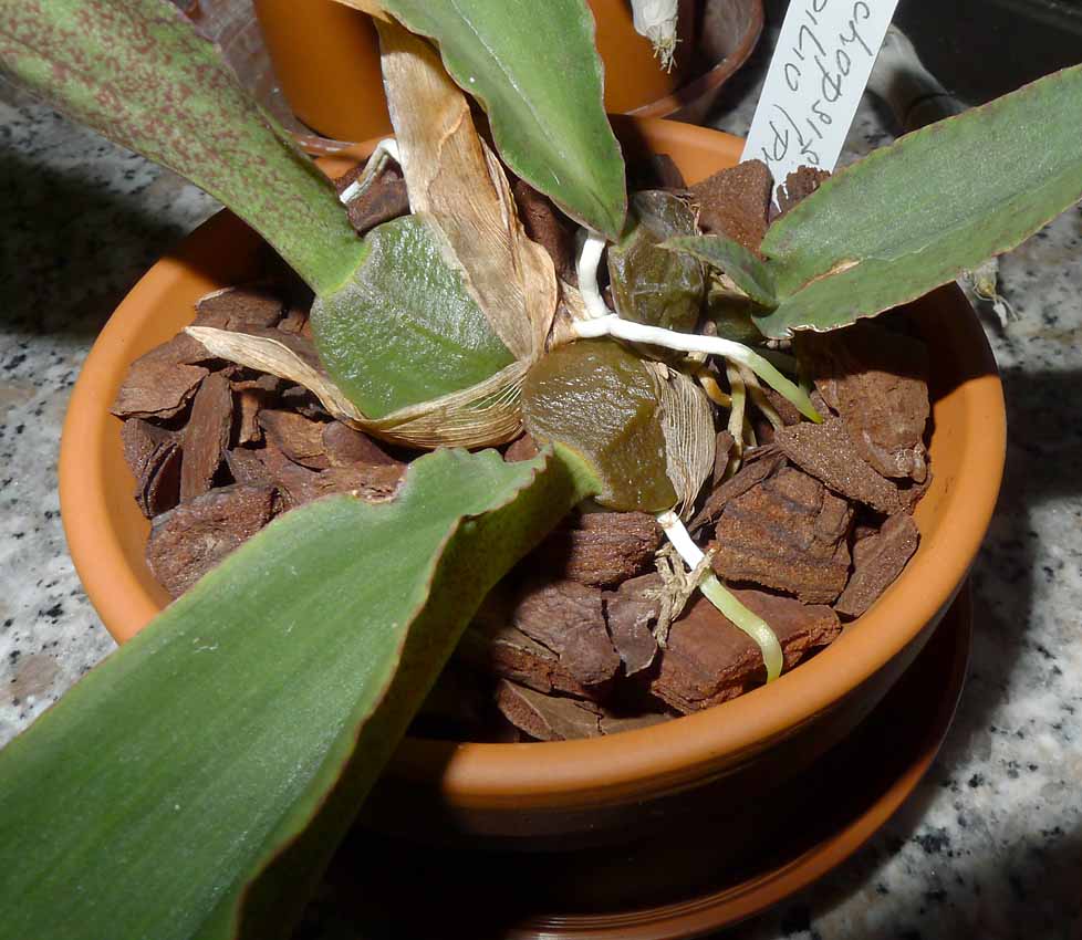 zaruba píše: Ani: Koukal jsem na těch Vašich dospělých rostlinách, že ty kořeny jsou ale ty původní, protože nemají zelené špičky- takže nepřirůstají. Ta malá vyvázaná té rostou ok. Já mám ten Psychopsis papillio, co má být pravé papilio od majitele z Orchids&more a kořeny mu nyní krásně rostou. Ta rostlina je ještě malá, takže kvetení bude zase překvápko, ale v piniovce se mu opravdu líbí. já bych řekla, že kořeny rostou, protože jsou přichycené na kouskách kůry. Staré by se tak nepřichytily. No nejlépe to bude vědět Ani, ví jak to vypadalo, když sázela. A takto to má krásně přehledné, na kořeny vidí a nemusí štourat do květináče.