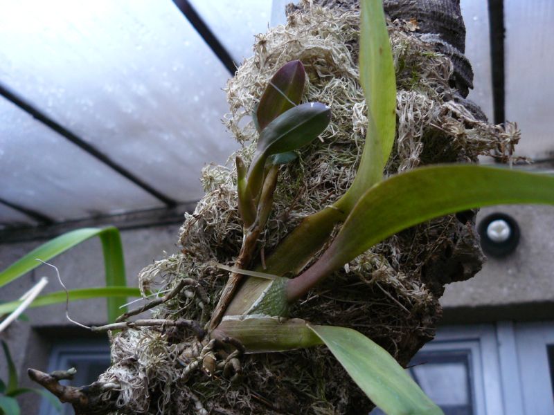 No na květ je asi dost brzo. Musím přiznat, že jsem Otoglossum koupil vloni. Kytka byla jen kousek rhizomu a jediná olistěná pahlíza. Neviděl jsem to moc dobře ale vyvázal jsem jej. Celou dobu se nic nedělo a tak jsem už viděl v duchu jak půjde do popelnice ale cca před dvěma měsíci se začalo hýbat a vyrazil nový výhon, který začíná mít známky rašících kořenů, tak to snad dopadne. Bohužel to byla velice slabá rostlina a jsem rád, že se snad udrží. Na spodní části je vidět ještě jeden výhon, který se zastavil a prozatím se nehýbe. Jinak ty zbytky kořenů jsou tak, jak jsem koupil. Prostě bez kořenů. No chtěl jsem ho, tak to asi dopadne.