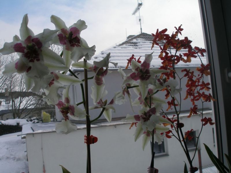 lm26 píše: nedavno jsem se dočetla, že colmanara je teplomilný až temperovaný hybrid. Jinde zase, že její kořeny nesnášejí přeschnutí, zalévá se vydatně během celého roku a má ráda chladnější a vlhčí prostředí Tak z toho začínám být lehce rozpačitá, když jejich rodiči jsou miltonie, oncidia a odontoglossa a ti jsou chladnější, (aspoň doufám, že mám načteno), tak snad i jejich kříženec bude chladnější . . . ? Kde se vzal ten teplomilný až temperovaný hybrid ? Zatím mám svoji první Colmanaru v chladné ložnici, doufám, že nenastydne  No ja mám Colmanaru Wildcat Bobcat normálně s ostatníma orchidkama při těch 19 -23 °C a hodně zalívám, opravdu chce hodně vody, ale vždy až trochu vyschne substrát. Po odkvětu ji dám tak na 1 měsíc do chladnější ložnice a minimálně zalívám a potom zpět mezi ostatní a od půlky června do konce srpna je venku ve stínu, jen ráno slunce asi do 11 hod a před vánoci kvetla z jedné pahlízy na dvou stvolech a hrozně moc květů, taky substrát více hlinitější, ale propustný a já ji teda mám v hliněném květináči ,aby líp držel vlhkost a vyhnala další velkou pahlízu.
