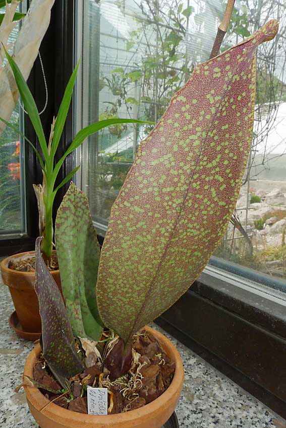 Ani: Já ho mám v čisté kůře a v keramickém květináči. Myslím, že potřebuje mezi zálivkami téměř proschnout a to i ve vegetaci. Také jsem někde přečetl, že je to druh, který nemá rád rosení. Bude asi dost náchylný k hnilobám. Podle pahlízy a sukulentního listu je asi dost suchomilný třeba jako Laelia speciosa. Ty plastové květináče a rosení budou problém, neboť vnitřek substrátu asi nevysychá  Ano, jak píše pod mým příspěvkem Zdenka, pahlízy by určitě měly být nad povrchem substrátu.