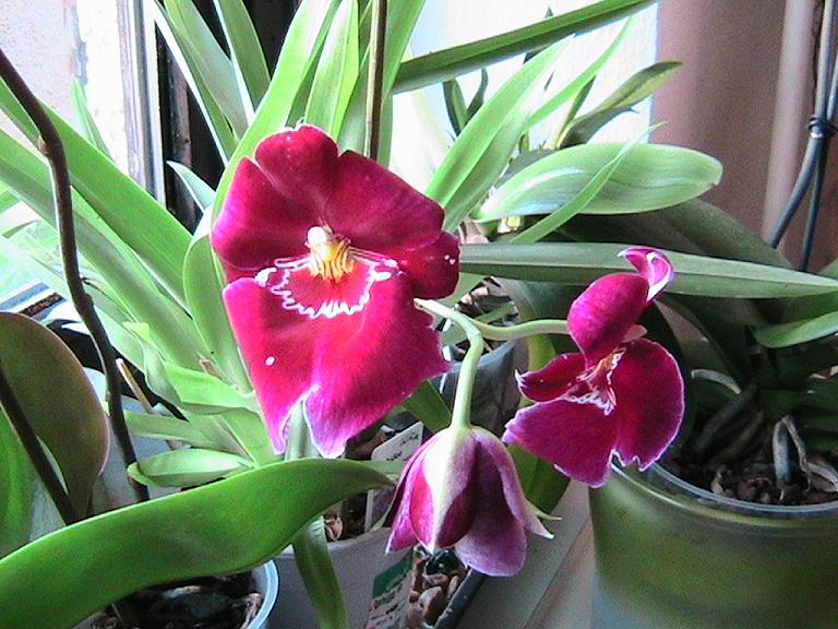 Miltoniopsis chce chladnější prostředí - v zimě ho mám v ložnici, od května do konce října (pokud nejde teplota pod 5C) je venku ve stínu. Chce pravidelnou, ale ne přehnanou zálivku, mě vyhovuje zalévání za cca 4-5 dnů. Ze začátku jsem měla se zálivkou problémy, varhánkovatěly mi listy - to je právě známka nepravidelné zálivky. Květy má krásné, vydrží tak 10-15 dnů. Ten co je vychocen z léta znovu právě kvete a má pět květů na jednom stvolu a na druhém měl květy dva. Hodně úspěchů a trpělivosti
