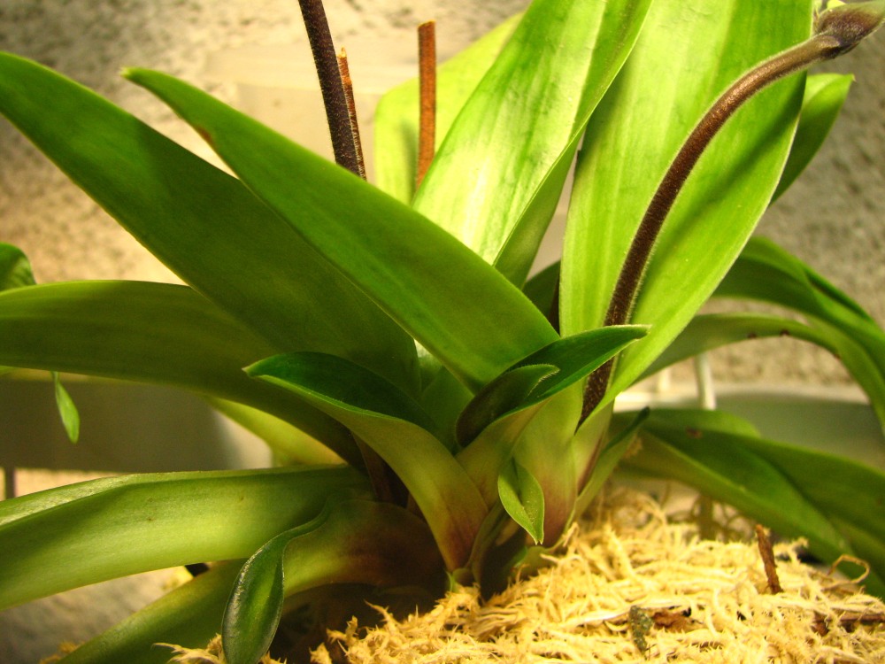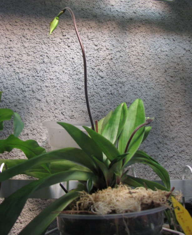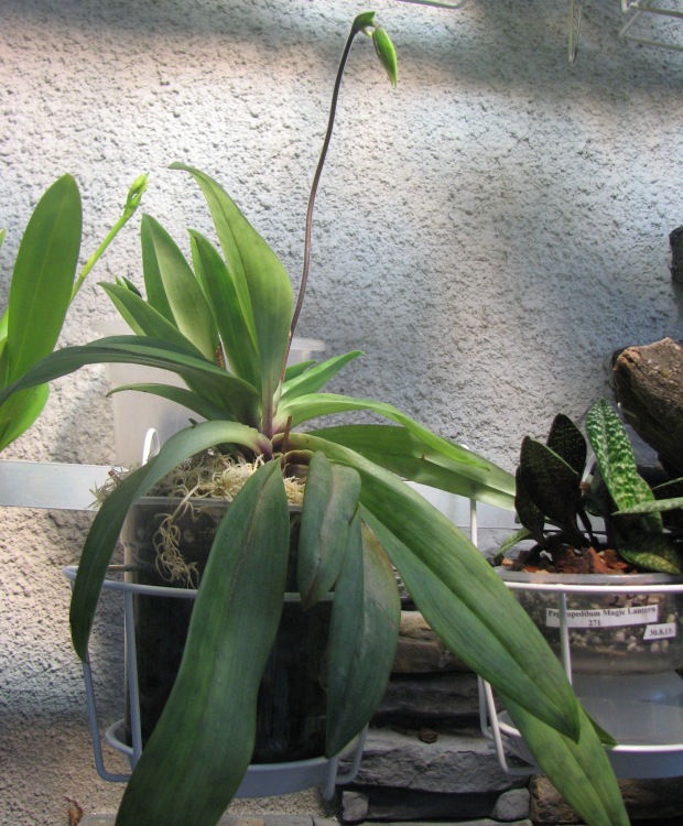 Paph. appletonianum.Už delší dobu na to koukám že asi asi možná možná budou dva květy na jednom květním stvolu?Netuším jestli se to spodní poupě vyvine ,ale zajímavé to je
