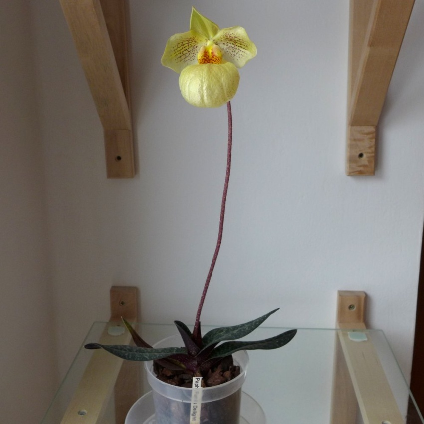 Zdravím zdejší nadšené pěstitelky a pěstitele, jejich fotky a příspěvky na tomto webu způsobily, že jsem loni v létě rozšíříl svou sbírku květin směrem k orchidejím. Dovolte, abych se pochlubil prvním květem ze stádečka paphiopedií. Je to Fumi's Delight (armeniacum x micranthum).
