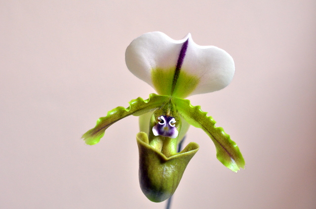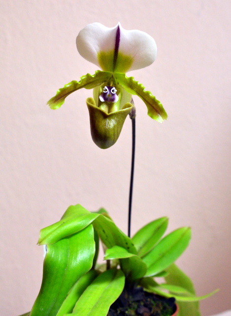 Jasný někdy se ty střevíce strašně maskujou .Fajn i za jeden květ.Dneska moje druhé Paph.spicerianum se ukázalo . Vrcholový list prasknul a zřejmě už z toho květní základ nebude .Ale já mám zkušenost –že ještě je šance.A taky trochu vidím stínek v růžici –pravda bůhví co to je.